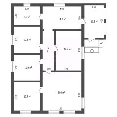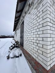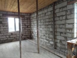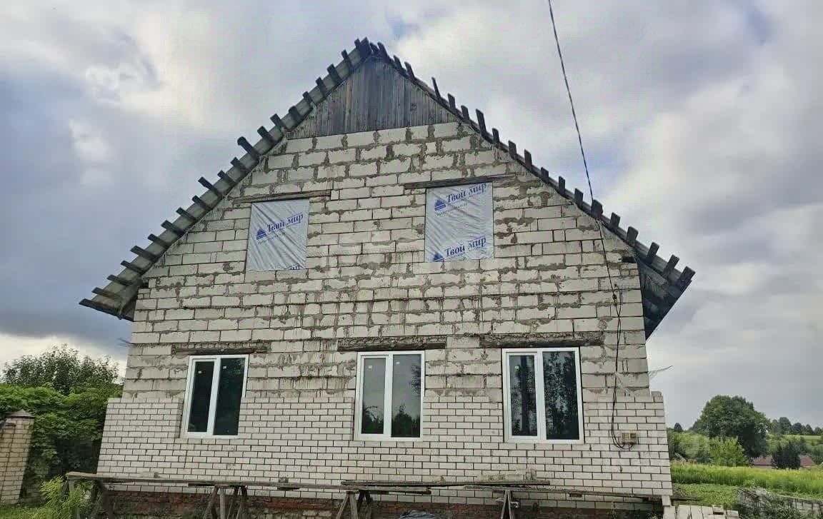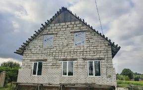 Дом общей площадью 200 кв. м возведен по индивидуальному проекту на ленточном фундаменте. Основной материал стен — газопеноблоки, 40% периметра уже облицовано кирпичом, оставшиеся материалы для завершения фасада в наличии. Кровля из металлочерепицы, установлены пластиковые окна и металлическая входная дверь. К объекту подведено центральное водоснабжение, смонтирован септик, газопровод проходит по границе участка.